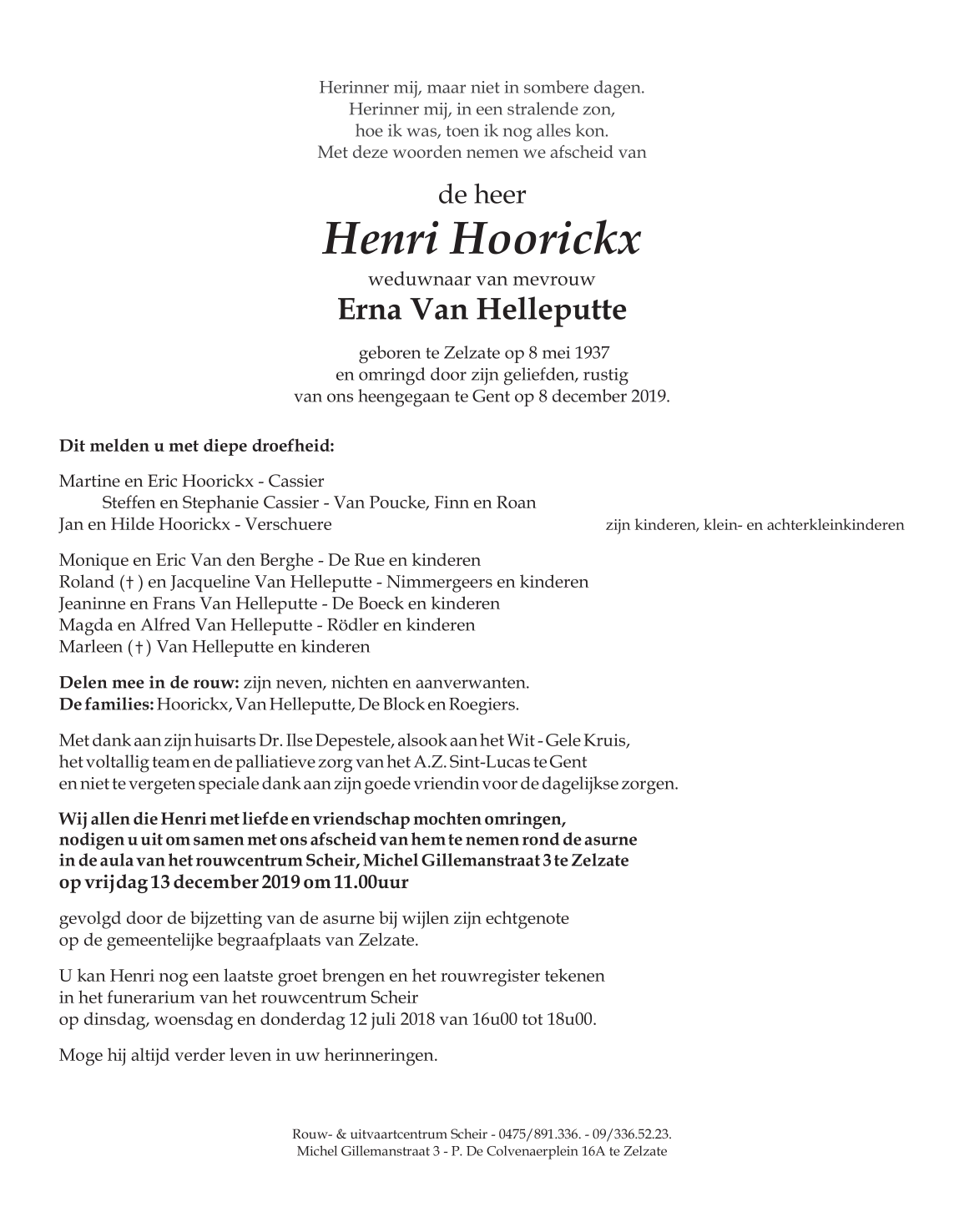 Died in Gent (9000) on 08 December 2019 at the age of 82 years