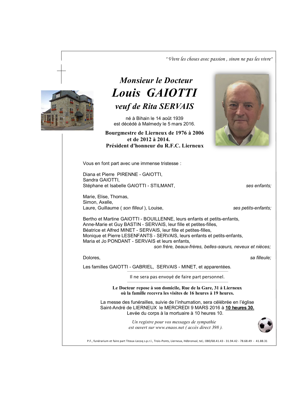 Fallecido en Malmedy (4960) el sábado, 5 de marzo de 2016 a la edad de 76 años