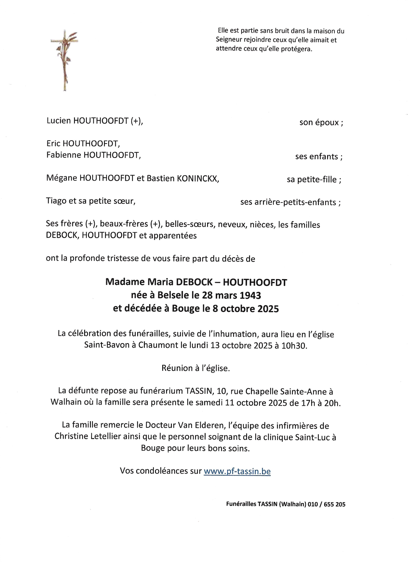 Veuve de Monsieur Lucien HOUTHOOFDT