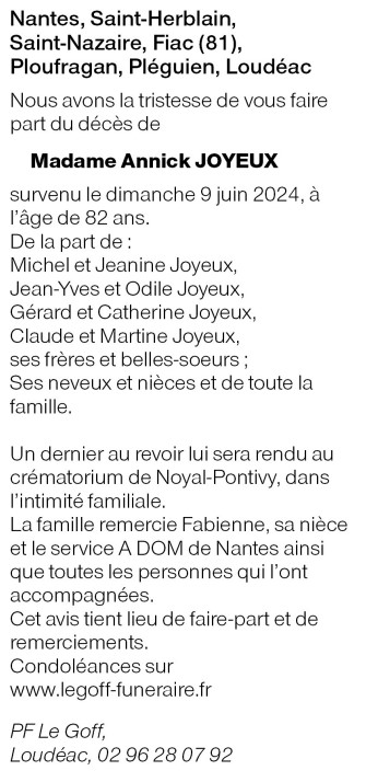 Died in Nantes (44000, France) on 09 June 2024 at the age of 82 years