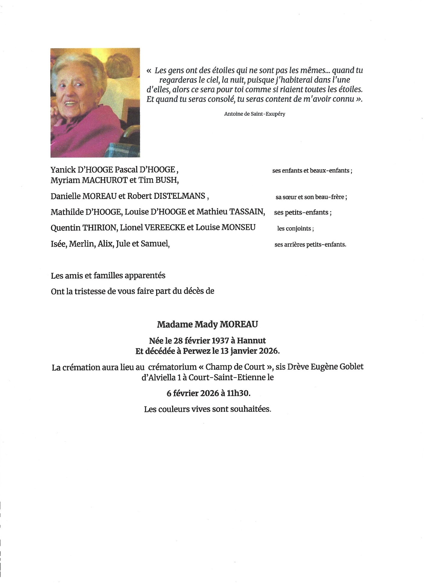 Died in Perwez (1360) on 13 January 2026 at the age of 88 years