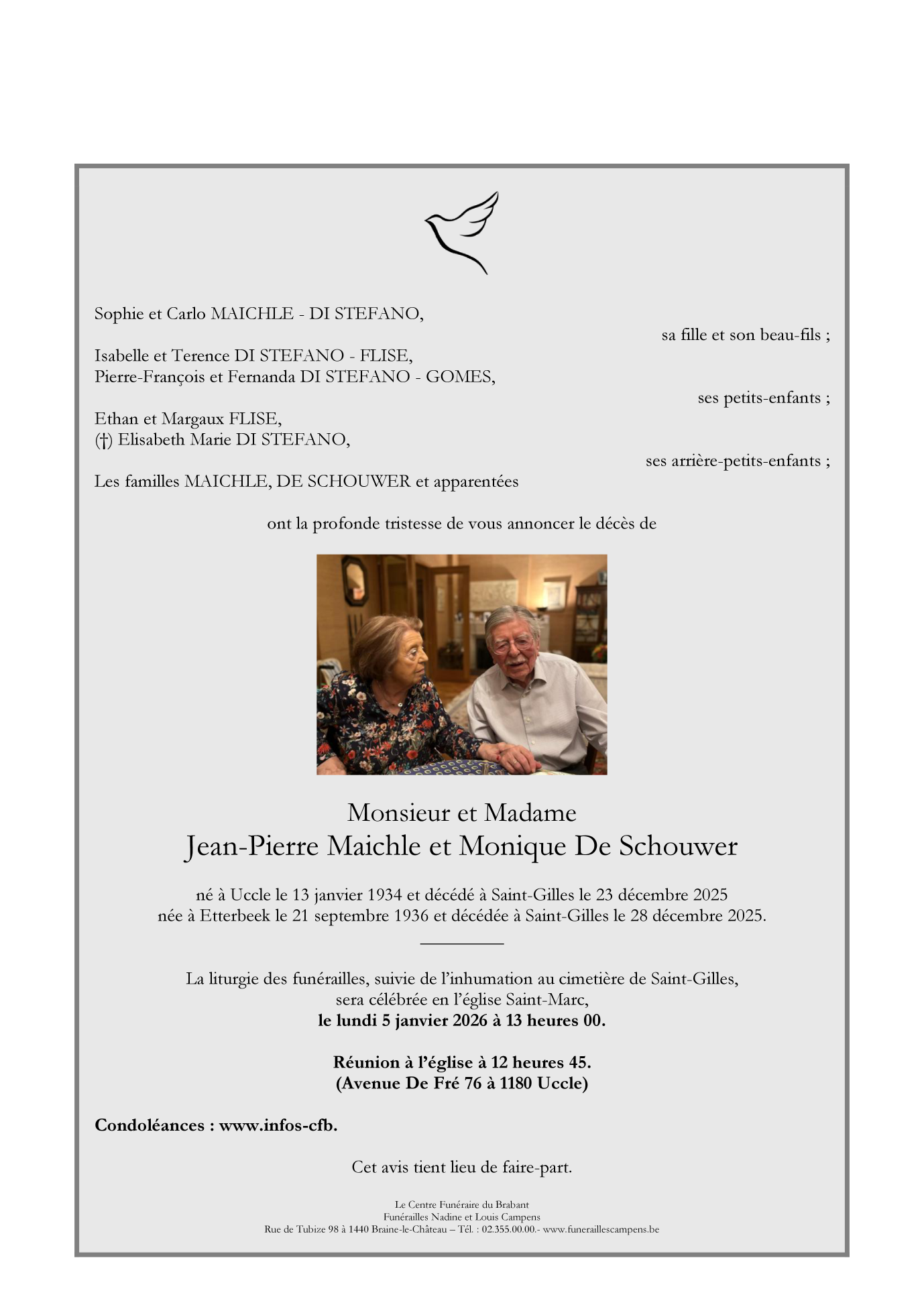 Décédé à Saint-Gilles (1060) le mardi 23 décembre 2025 à l'âge de 91 ans