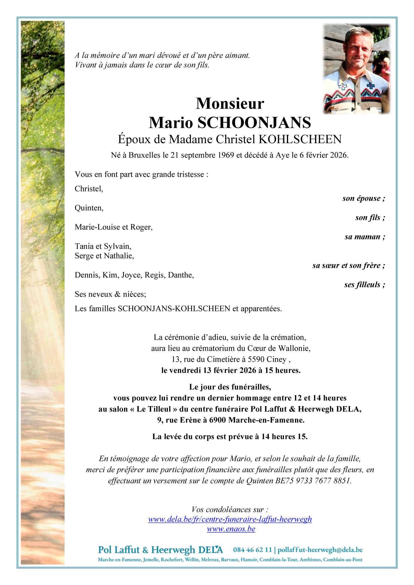 Décédé à Aye (6900) le vendredi 6 février 2026 à l'âge de 56 ans