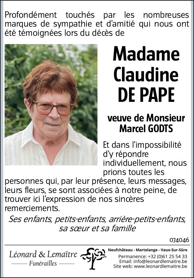 Décédée à Liège (4000) le mardi 23 juillet 2024 à l'âge de 85 ans