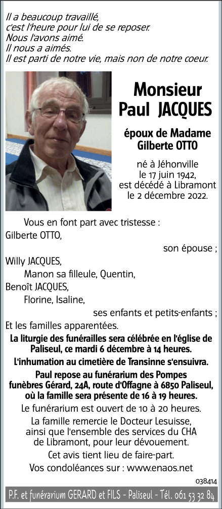 Died in Libramont (6800) on 02 December 2022 at the age of 80 years