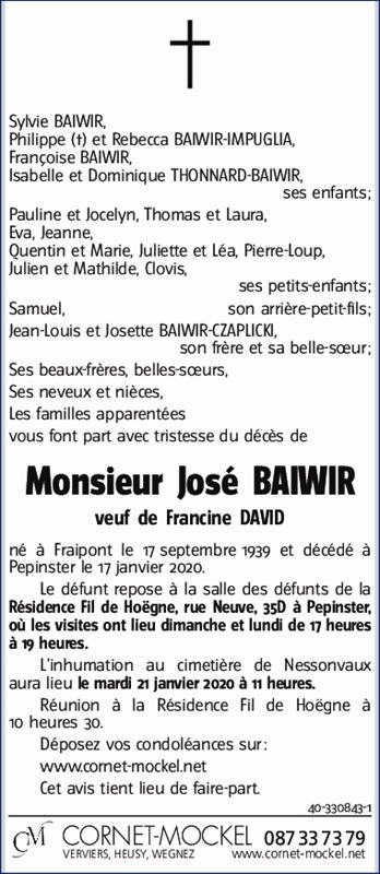 Décédé à Pepinster (4860) le vendredi 17 janvier 2020 à l'âge de 80 ans