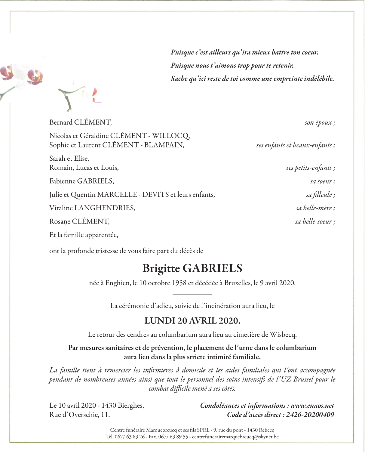 Overleden te Brussel (Jette) (1090) op donderdag 9 april 2020 op 61-jarige leeftijd