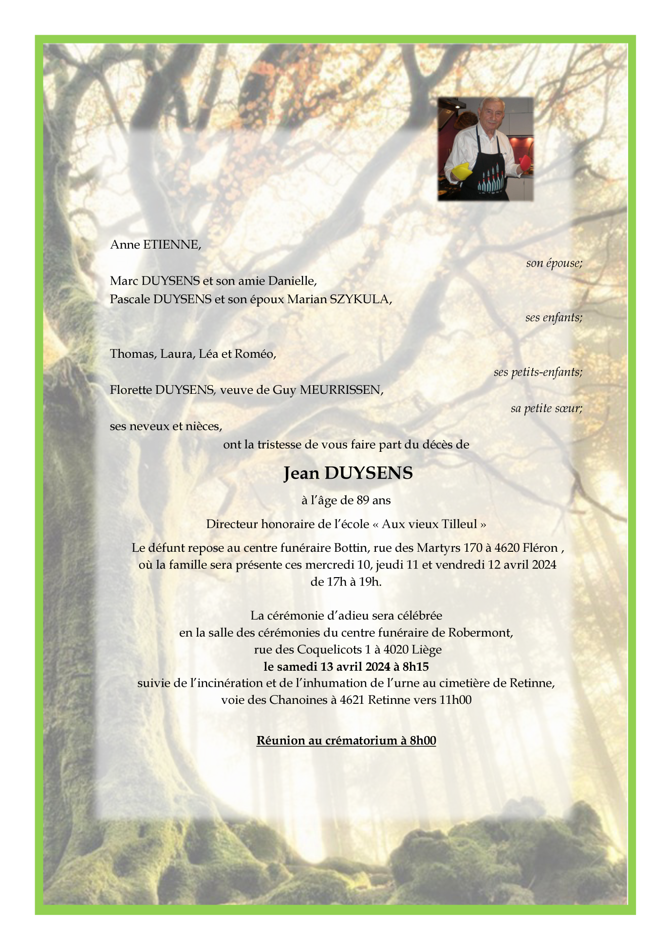 Died in Retinne (4621) on 08 April 2024 at the age of 89 years