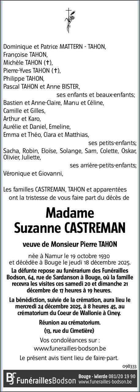 Décédée à Bouge (5004) le jeudi 18 décembre 2025 à l'âge de 95 ans