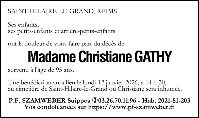 Décédée à Reims (51100, France) le samedi 3 janvier 2026 à l'âge de 95 ans