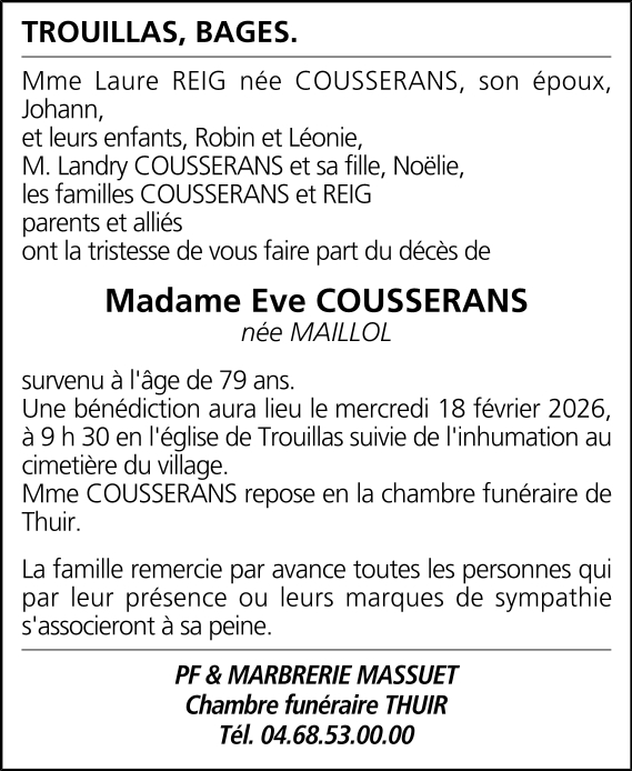 Died in Perpignan (66000, France) on 16 February 2026 at the age of 79 years