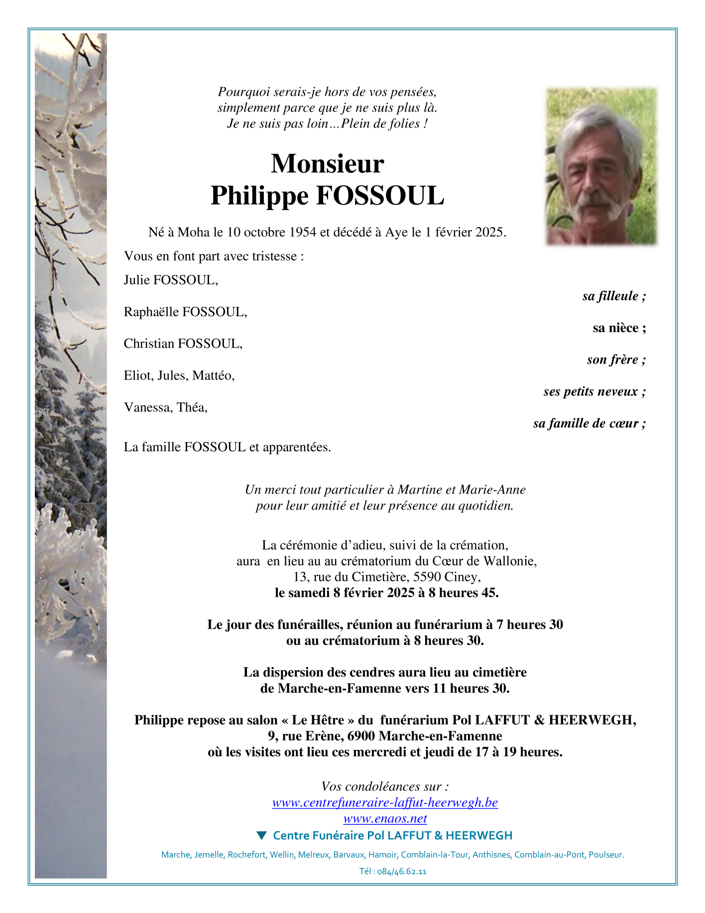 Décédé à Aye (6900) le samedi 1 février 2025 à l'âge de 70 ans