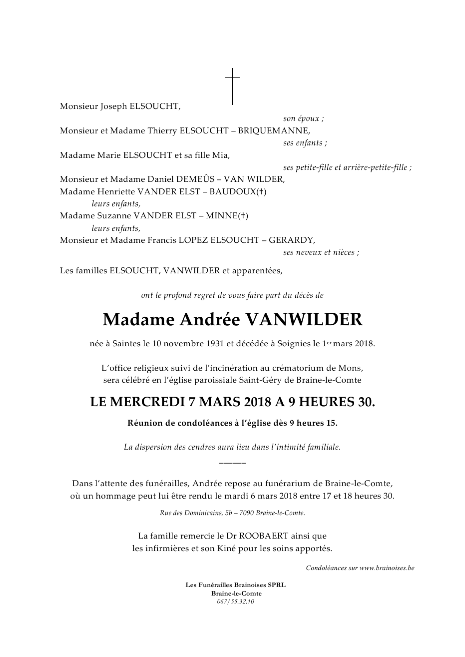 Madame Andrée VANWILDER