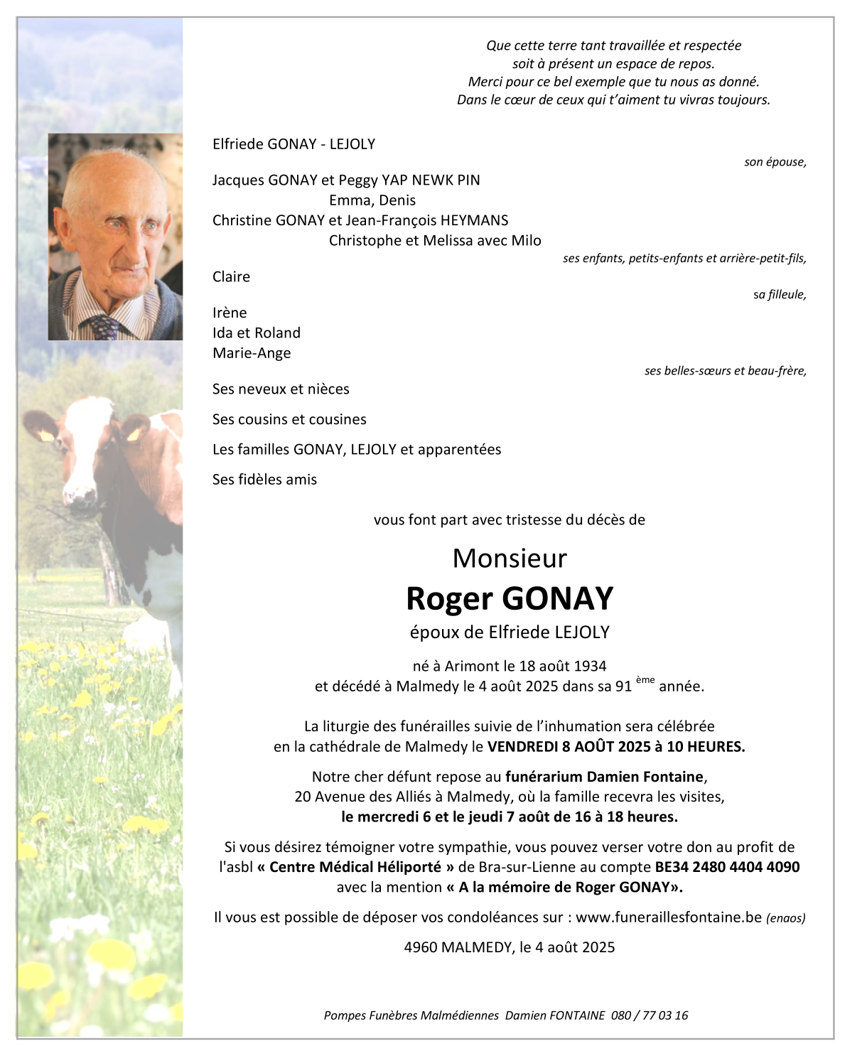 Décédé à Malmedy (4960) le lundi 4 août 2025 à l'âge de 90 ans
