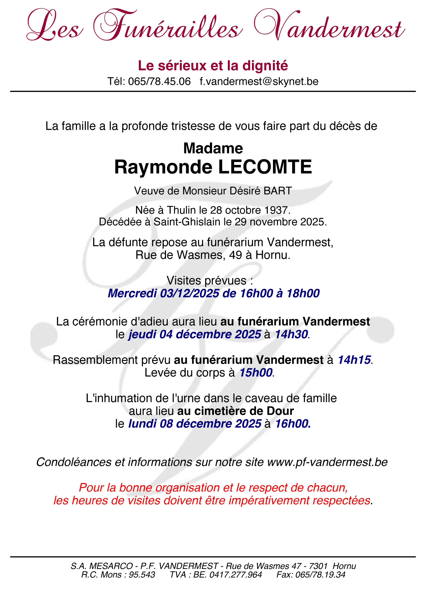 Died in Saint-Ghislain (7330) on 29 November 2025 at the age of 88 years