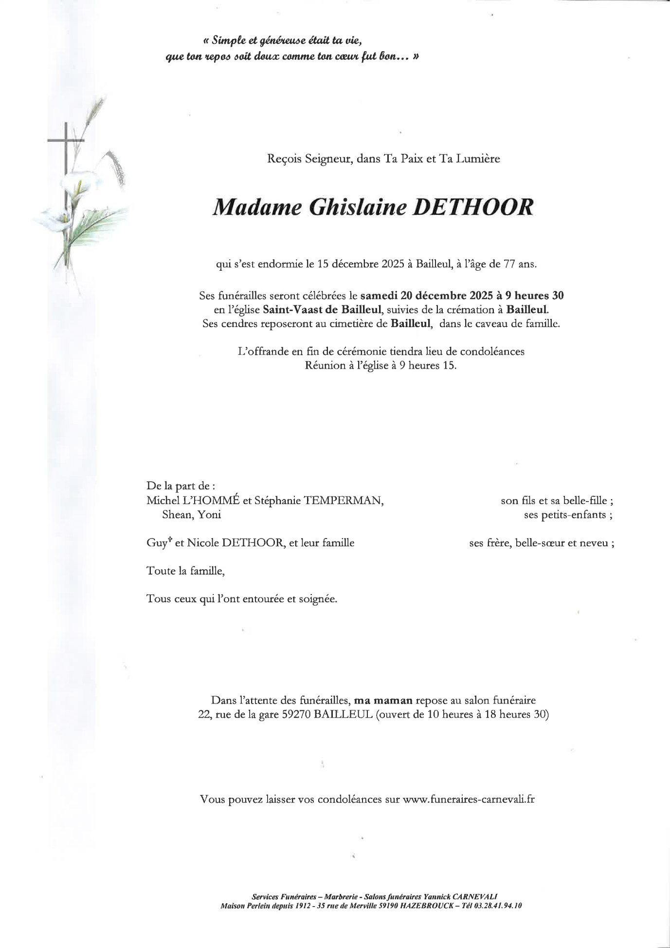 Overleden te Bailleul (59270, Frankrijk) op maandag 15 december 2025 op 77-jarige leeftijd