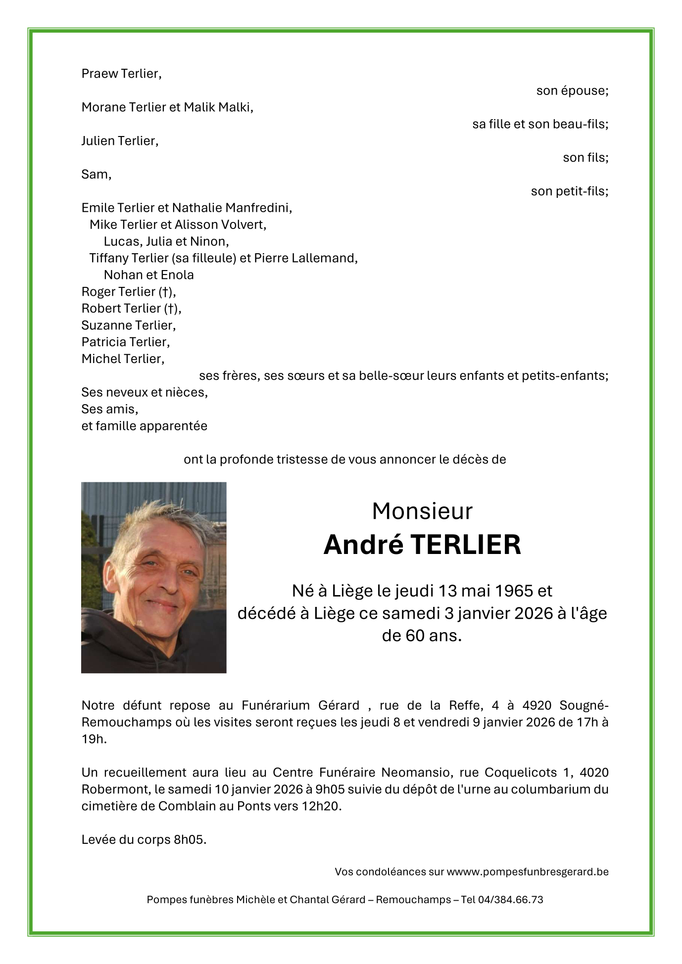 Décédé à Liège (4000) le samedi 3 janvier 2026 à l'âge de 60 ans