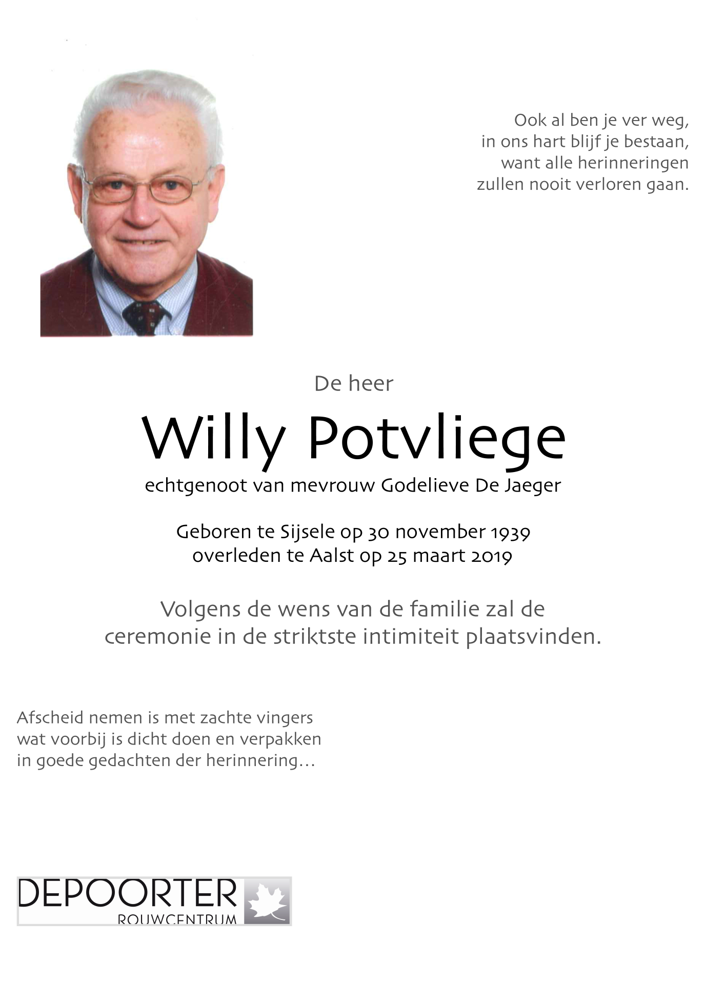 Décédé à Aalst (9300) le lundi 25 mars 2019 à l'âge de 79 ans