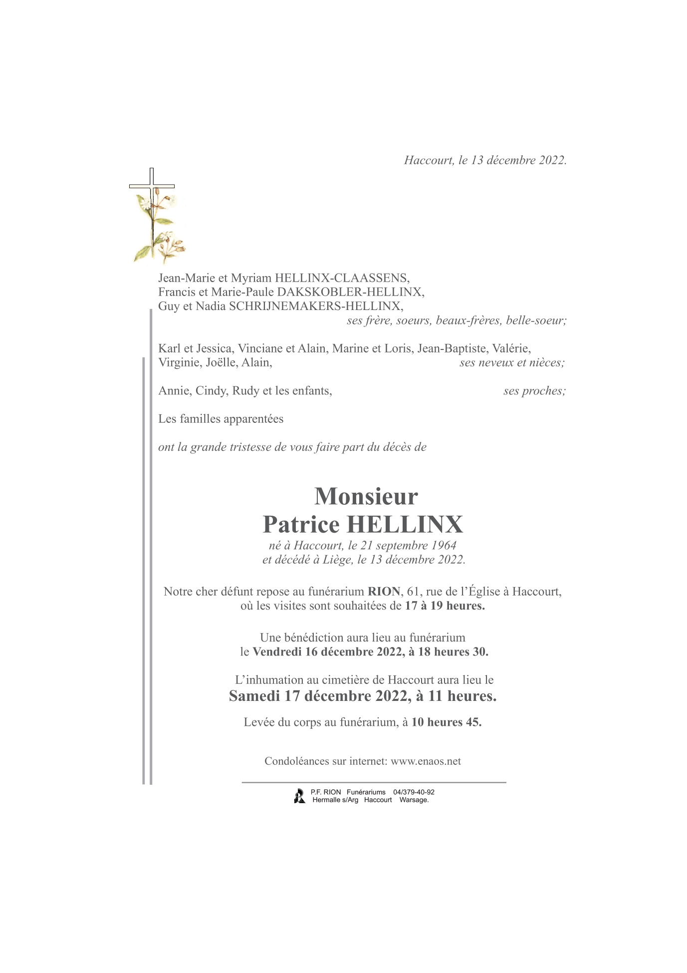 Died in Liège (4000) on 13 December 2022 at the age of 58 years