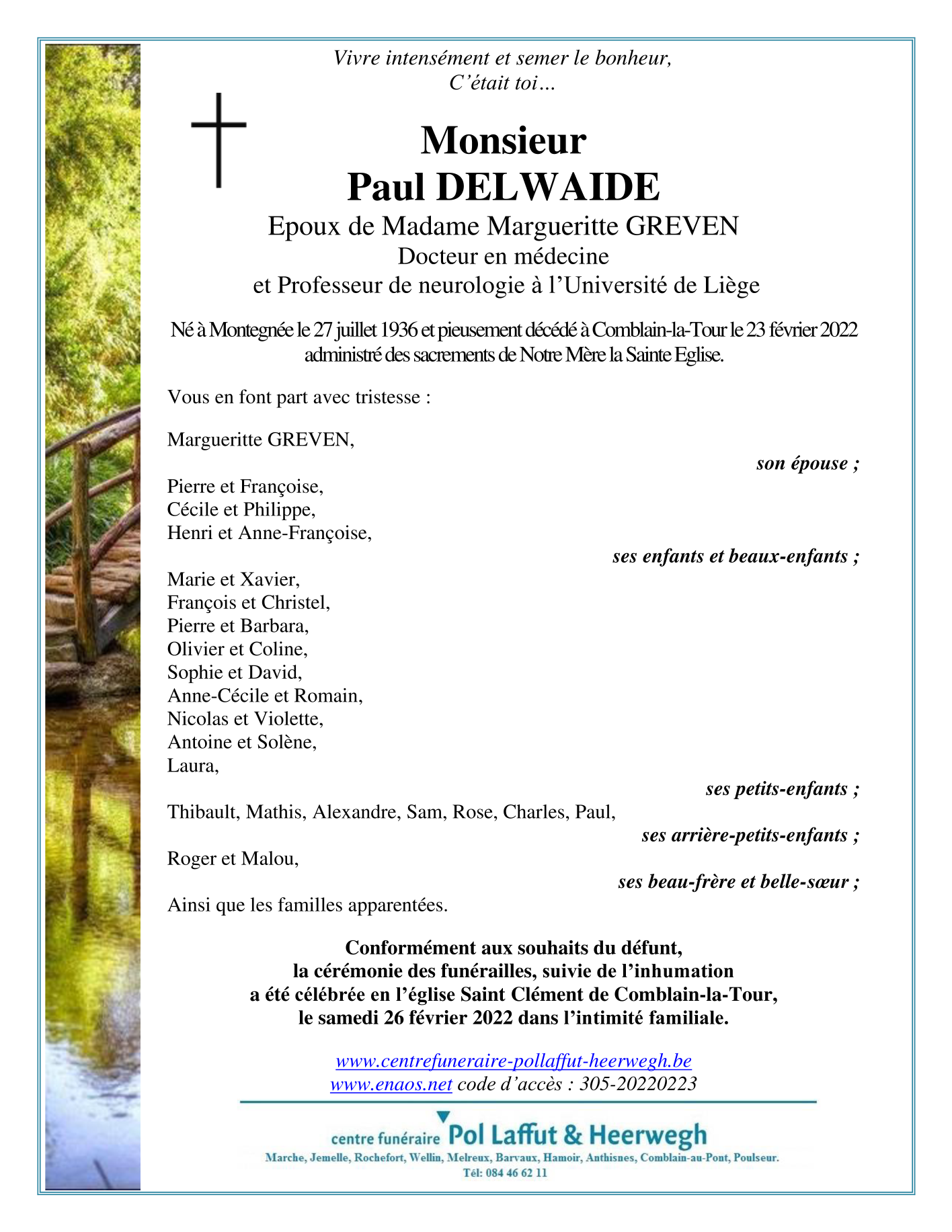 Fallecido en Comblain-la-Tour (4180) el miércoles, 23 de febrero de 2022 a la edad de 85 años