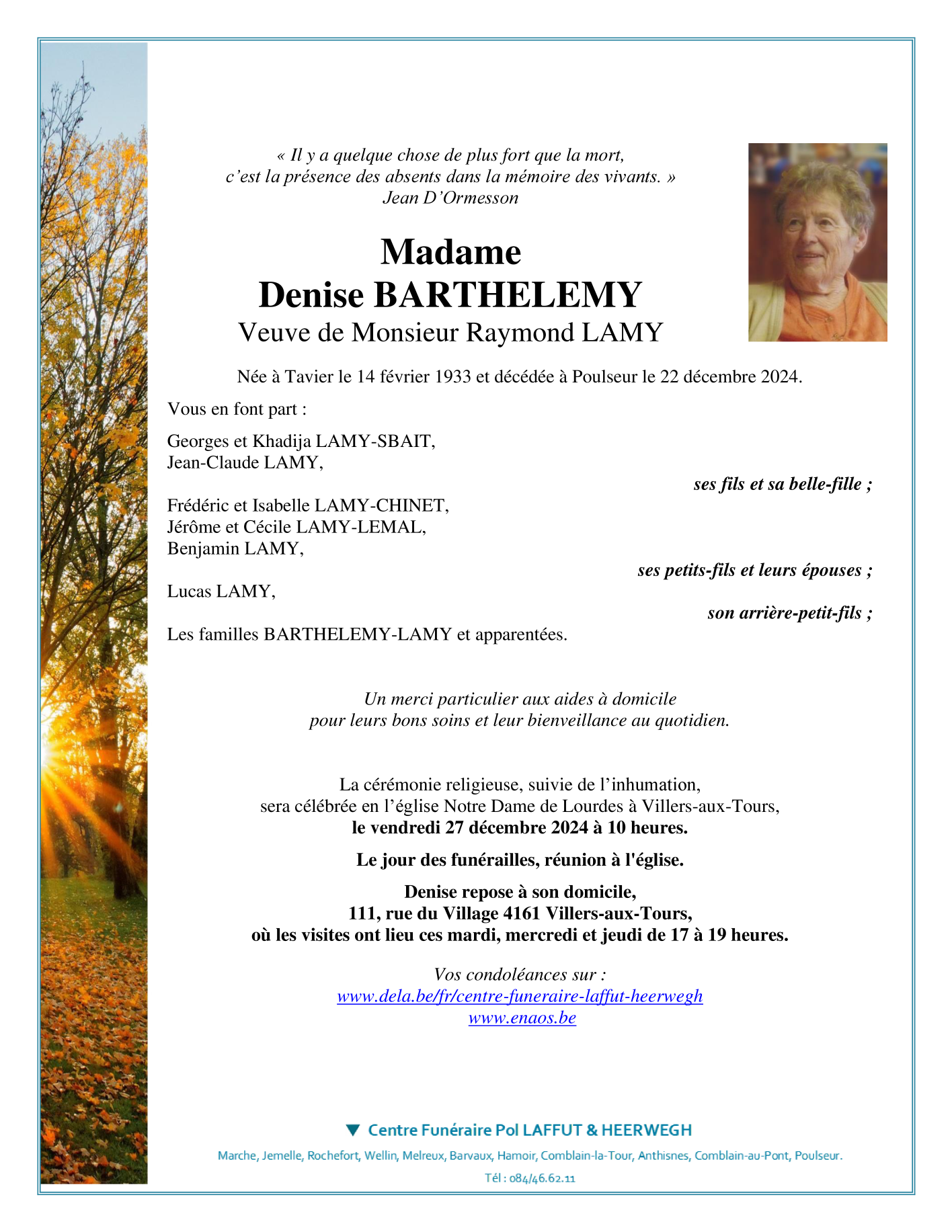 Died in Poulseur (4171) on 22 December 2024 at the age of 91 years