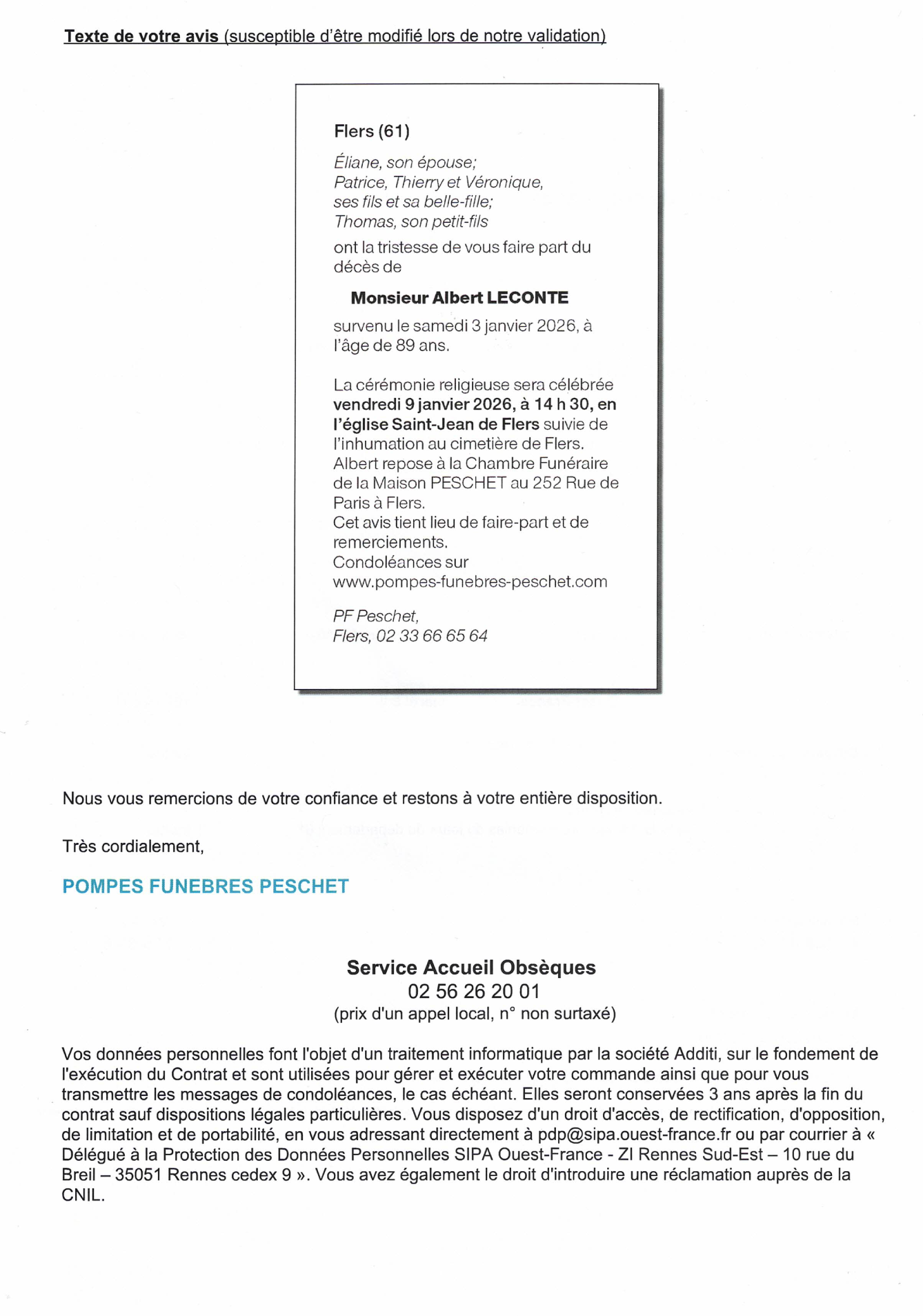 Annonce nécrologique
