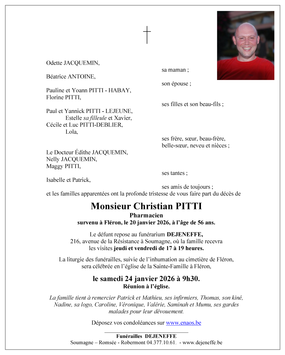 Died in Fléron (4620) on 20 January 2026 at the age of 56 years