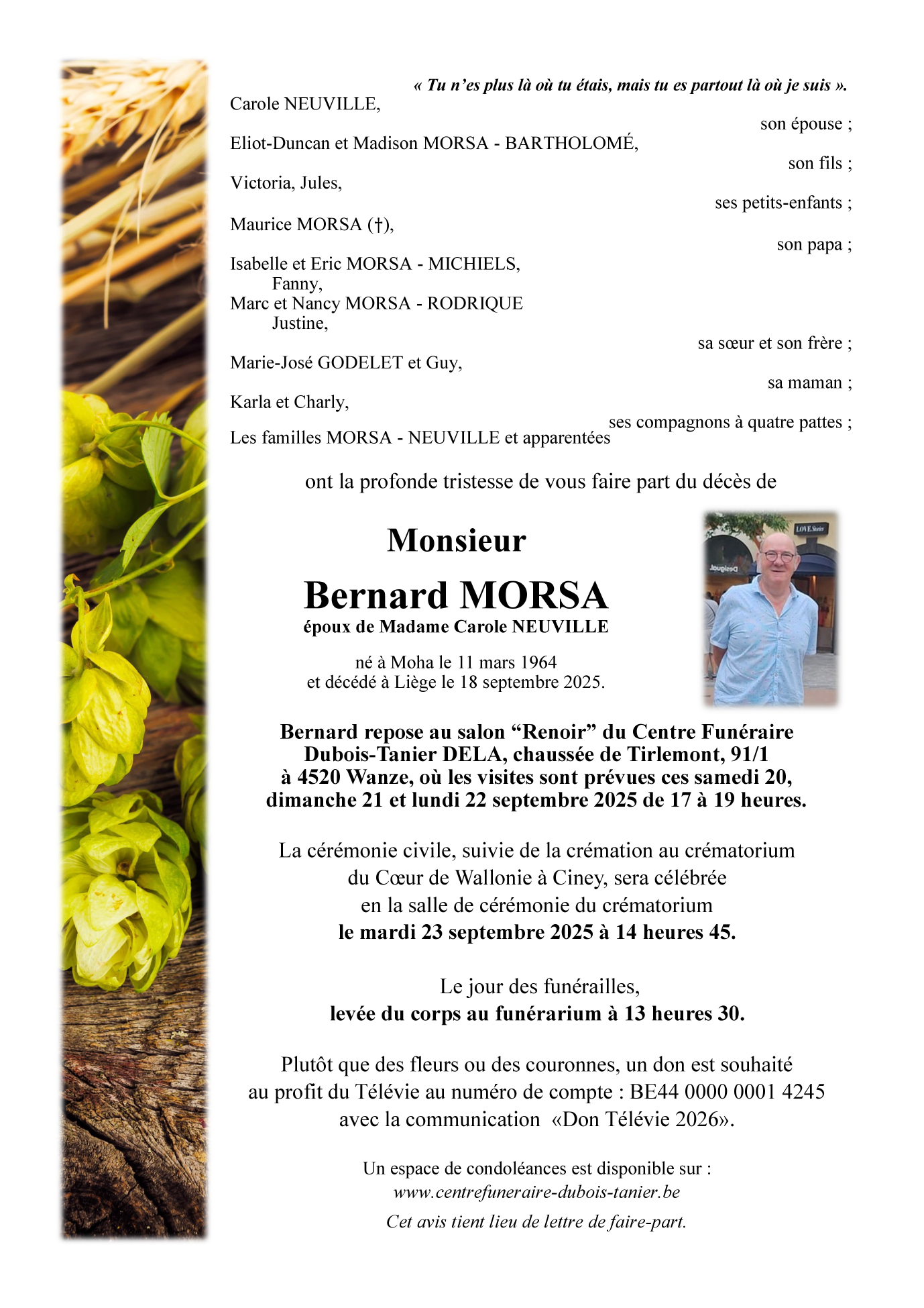 Décédé à Liège (4000) le jeudi 18 septembre 2025 à l'âge de 61 ans