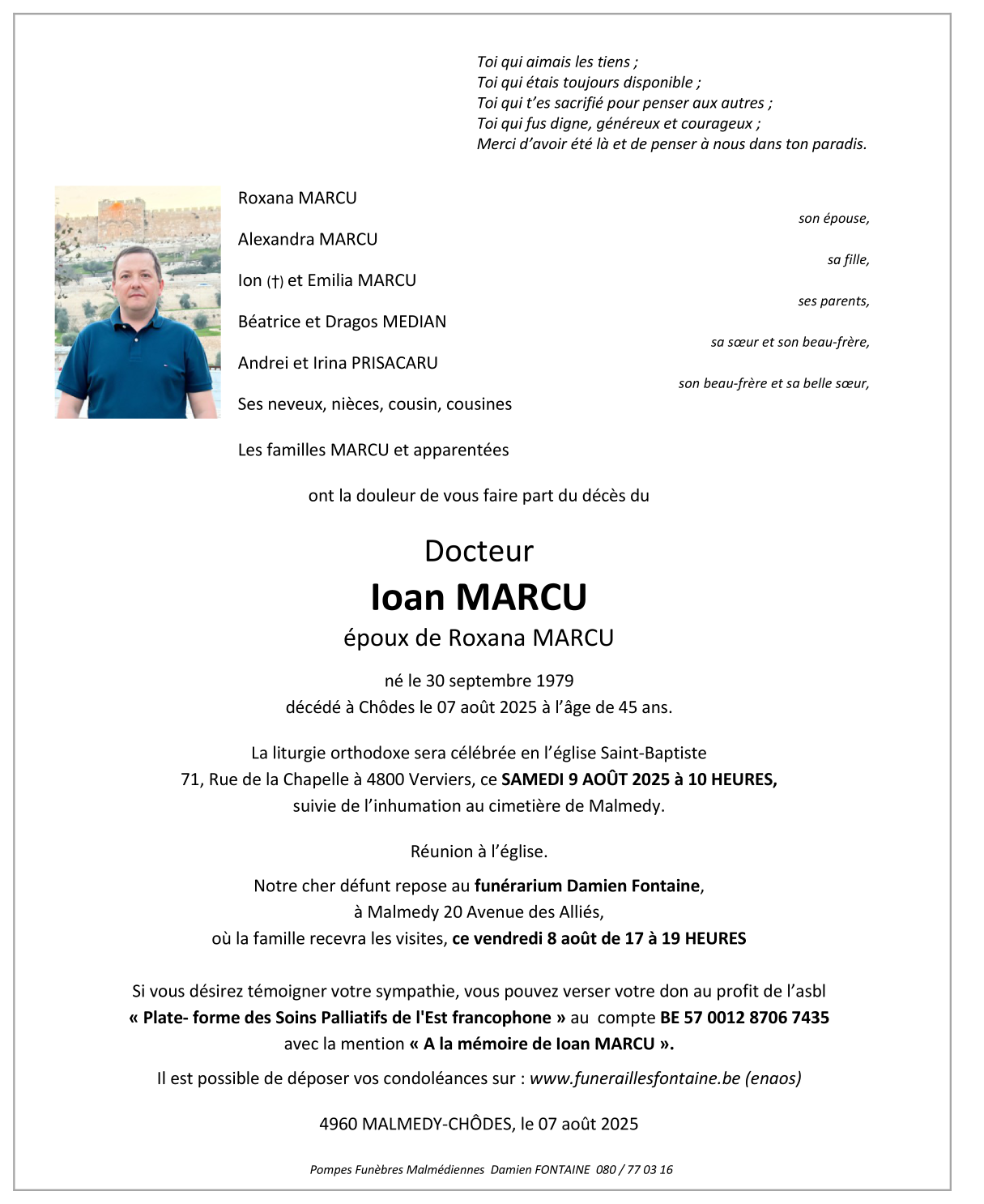 Décédé à Chôdes (4960) le jeudi 7 août 2025 à l'âge de 45 ans