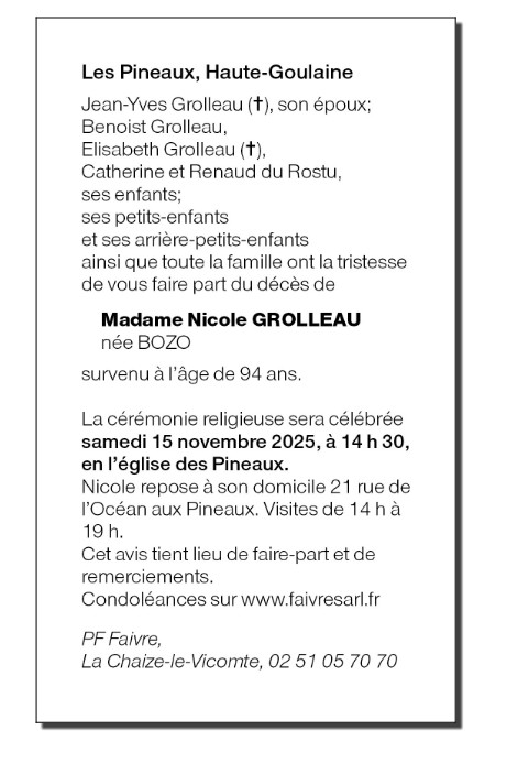 Viuda de Monsieur Jean-Yves GROLLEAU