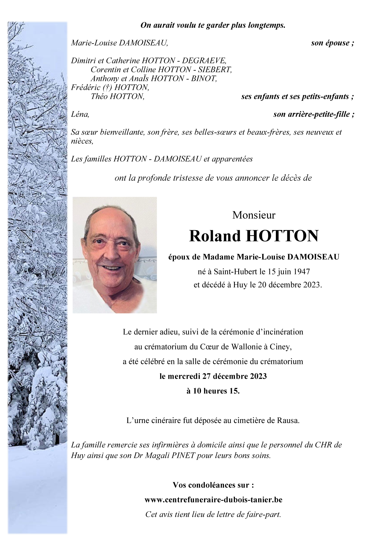Fallecido en Huy (4500) el miércoles, 20 de diciembre de 2023 a la edad de 76 años