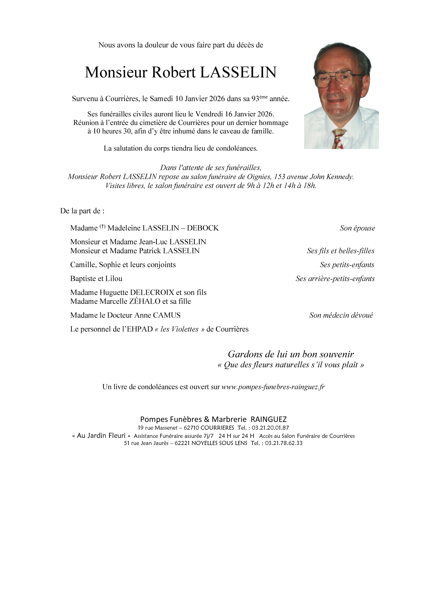 Décédé à Courrières (62710, France) le samedi 10 janvier 2026 à l'âge de 92 ans