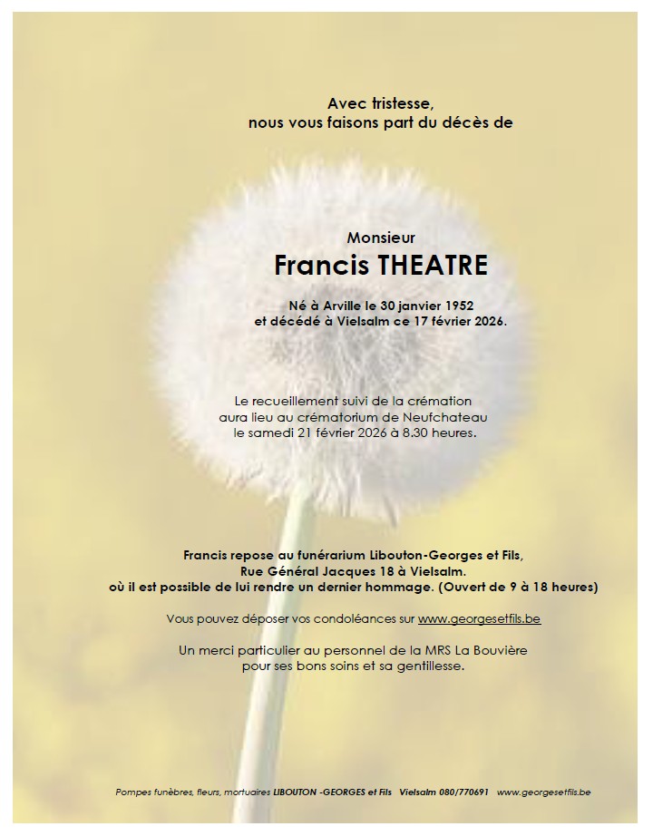 Décédé à Vielsalm (6690) le mardi 17 février 2026 à l'âge de 74 ans