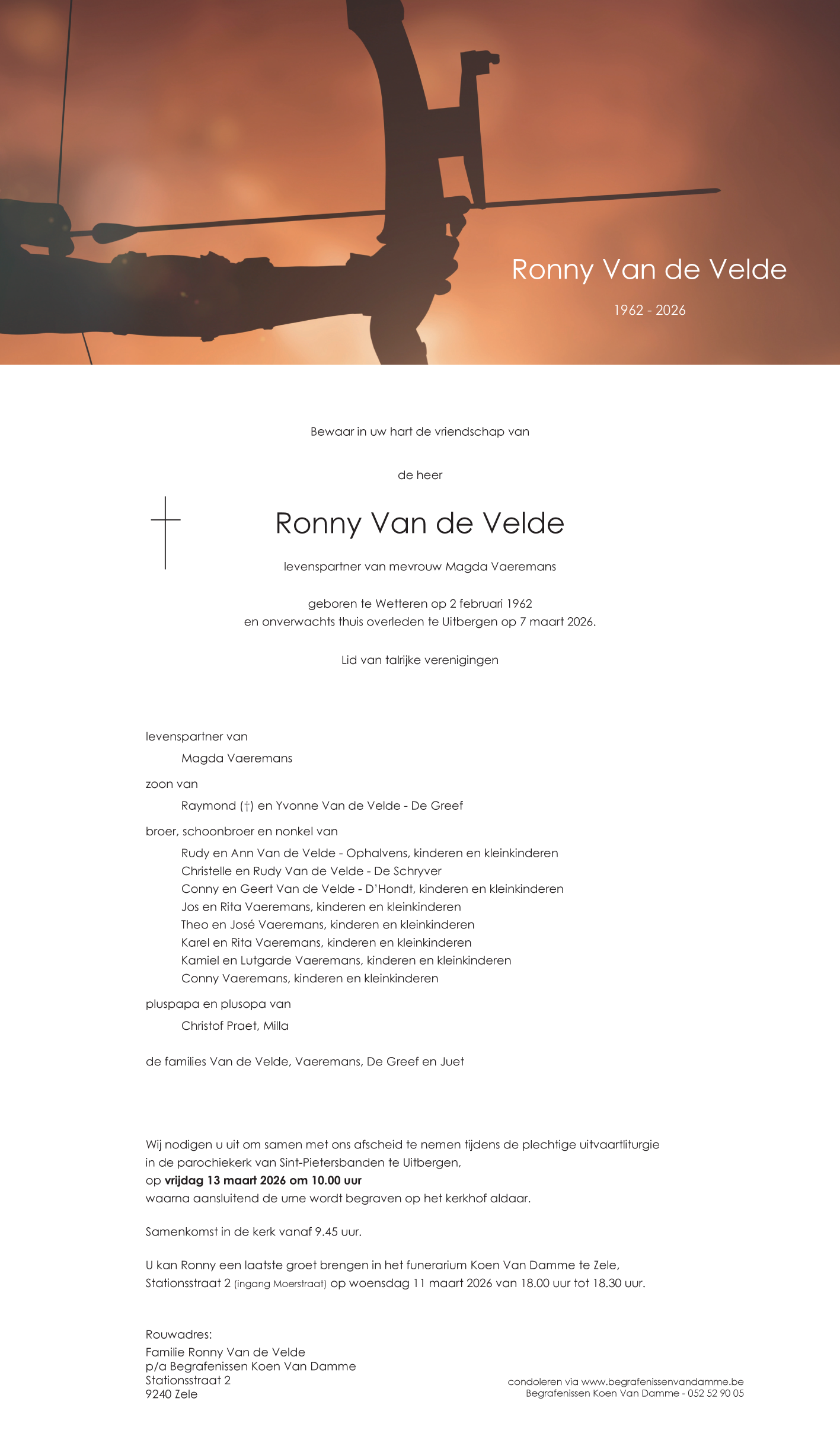 Fallecido en Uitbergen (9290) el sábado, 7 de marzo de 2026 a la edad de 64 años