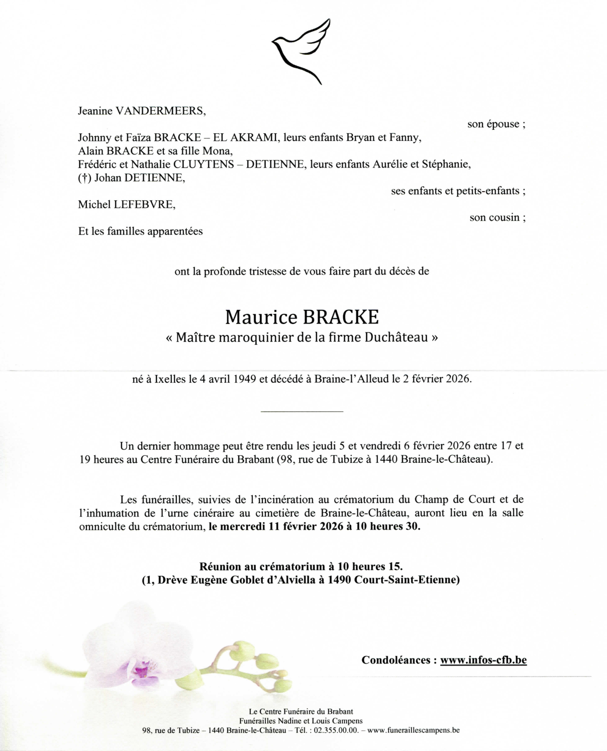 Décédé à Braine-l'Alleud (1420) le lundi 2 février 2026 à l'âge de 76 ans
