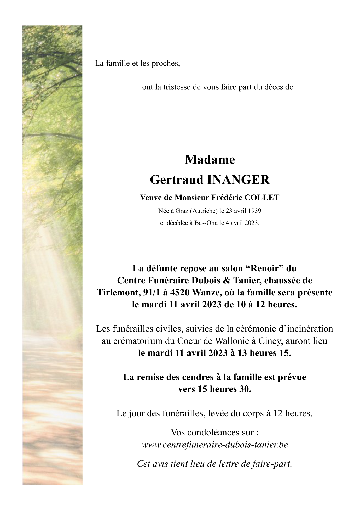 Annonce nécrologique