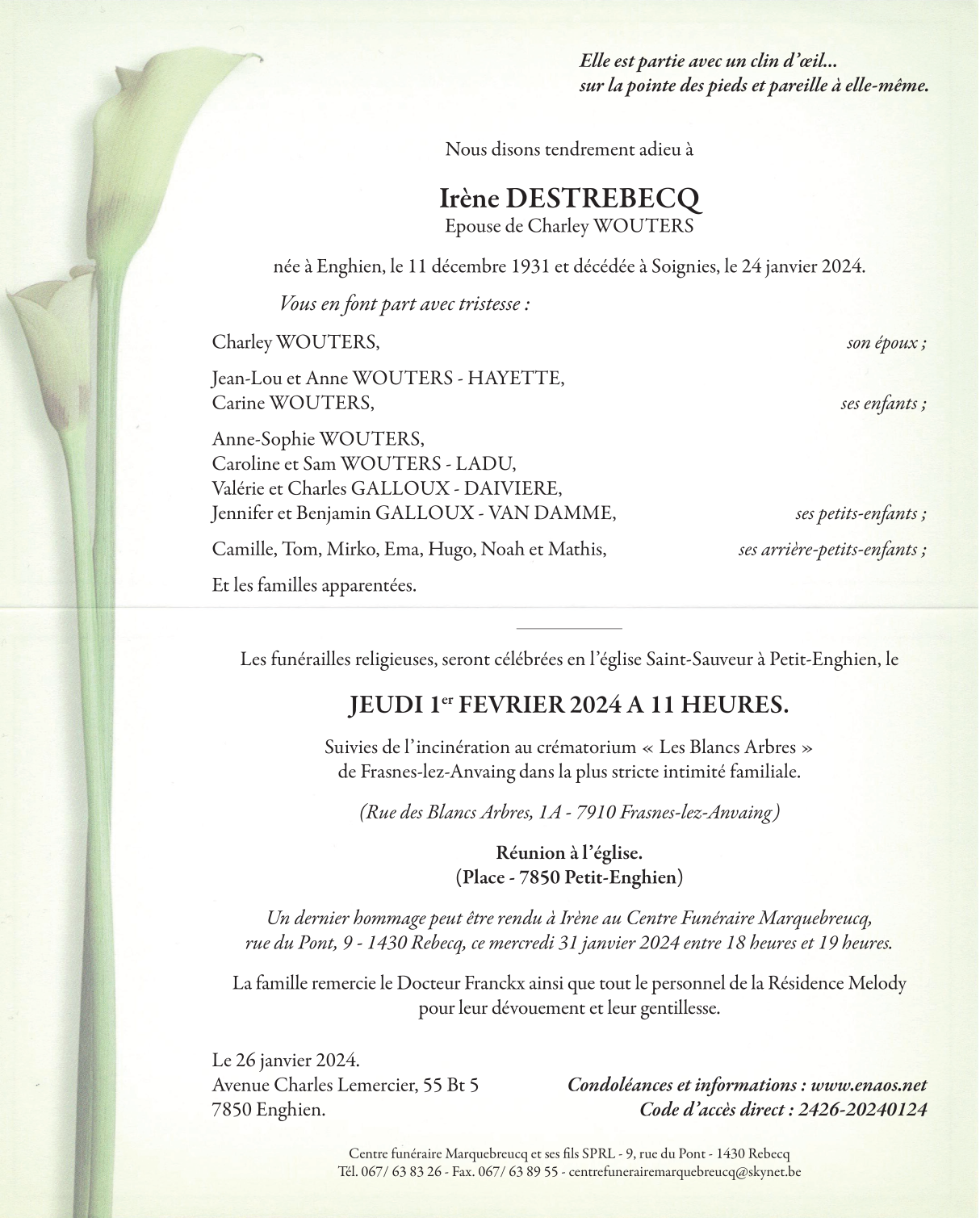 Overleden te Soignies (7060) op woensdag 24 januari 2024 op 92-jarige leeftijd