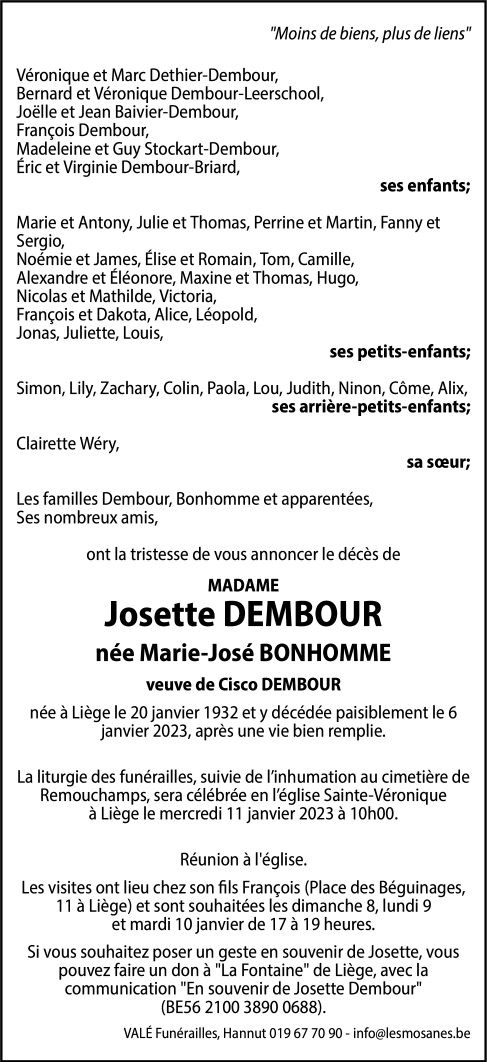 Overleden te Liège (4000) op vrijdag 6 januari 2023 op 90-jarige leeftijd