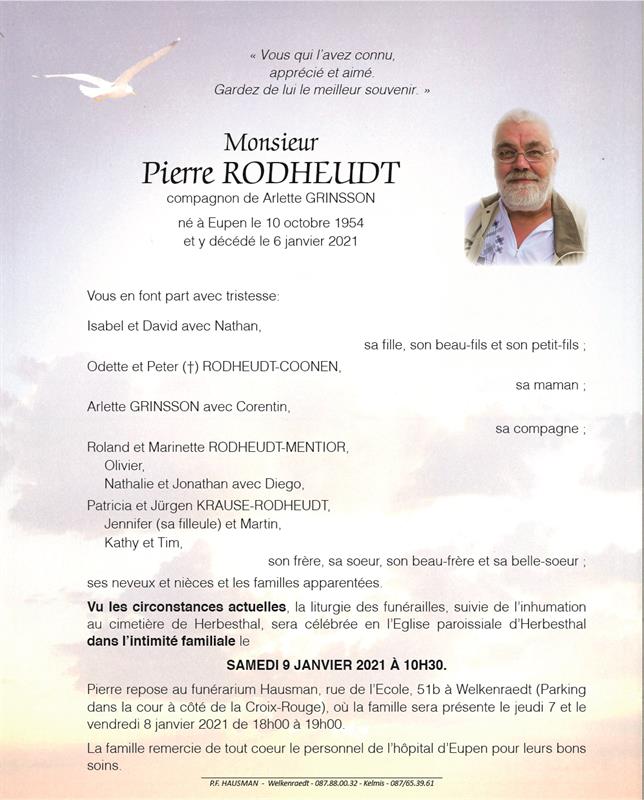 Fallecido en Eupen (4700) el miércoles, 6 de enero de 2021 a la edad de 66 años