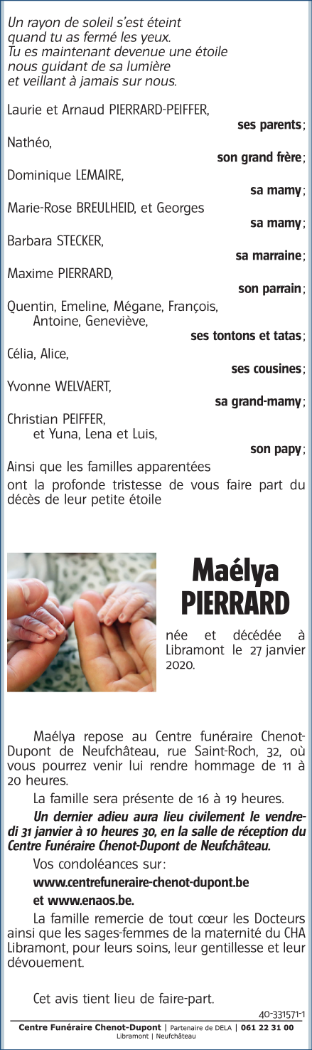 Geboren te Libramont (6800) op maandag 27 januari 2020