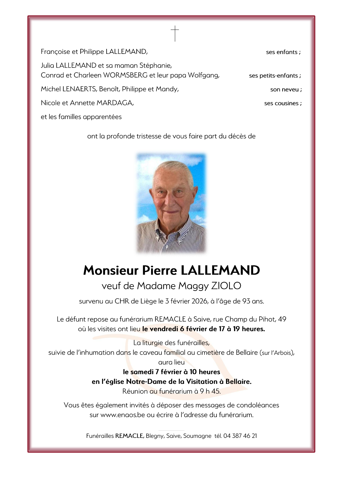 Décédé à Liège (4000) le mardi 3 février 2026 à l'âge de 93 ans