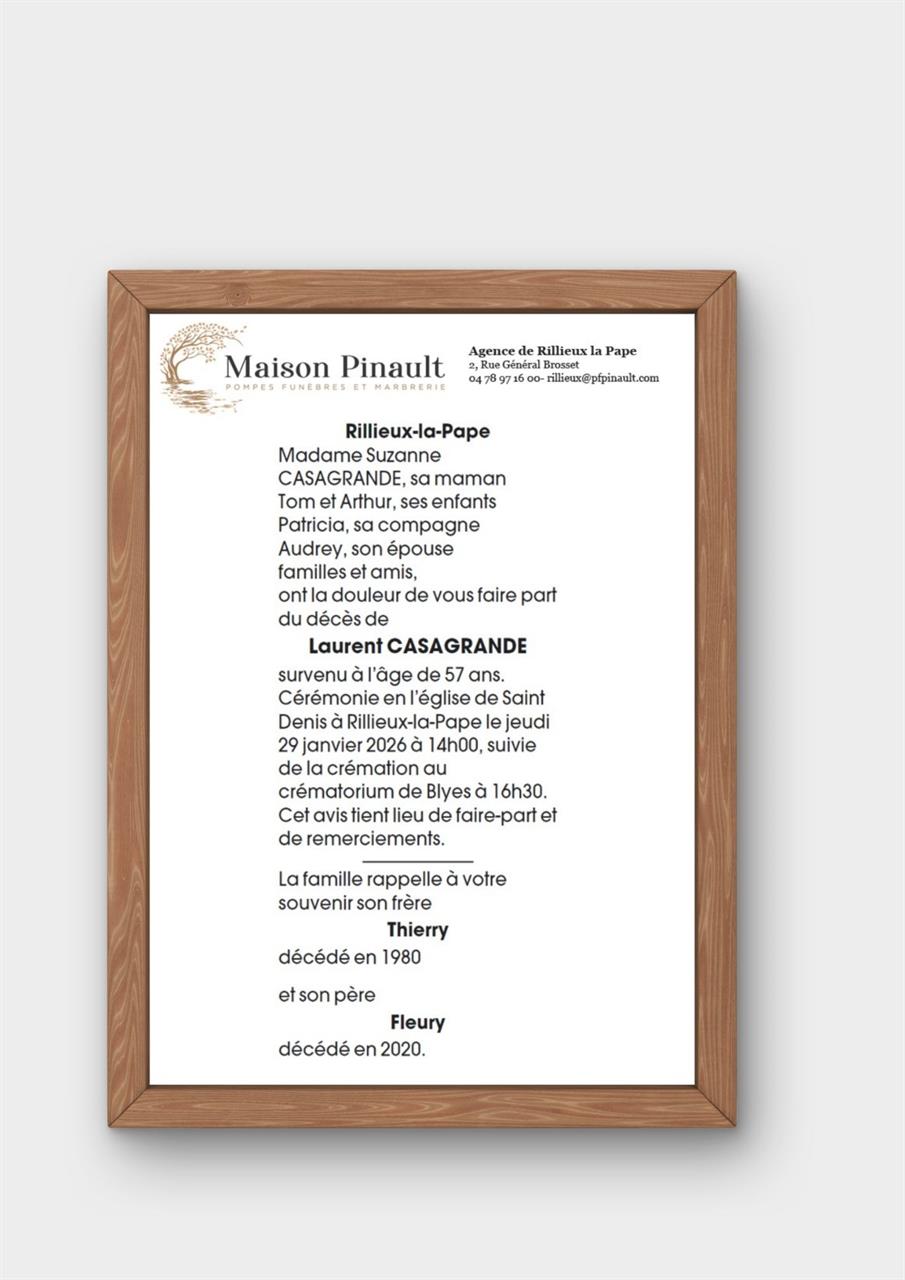 Décédé à Lyon (69008, France) le mardi 20 janvier 2026 à l'âge de 57 ans