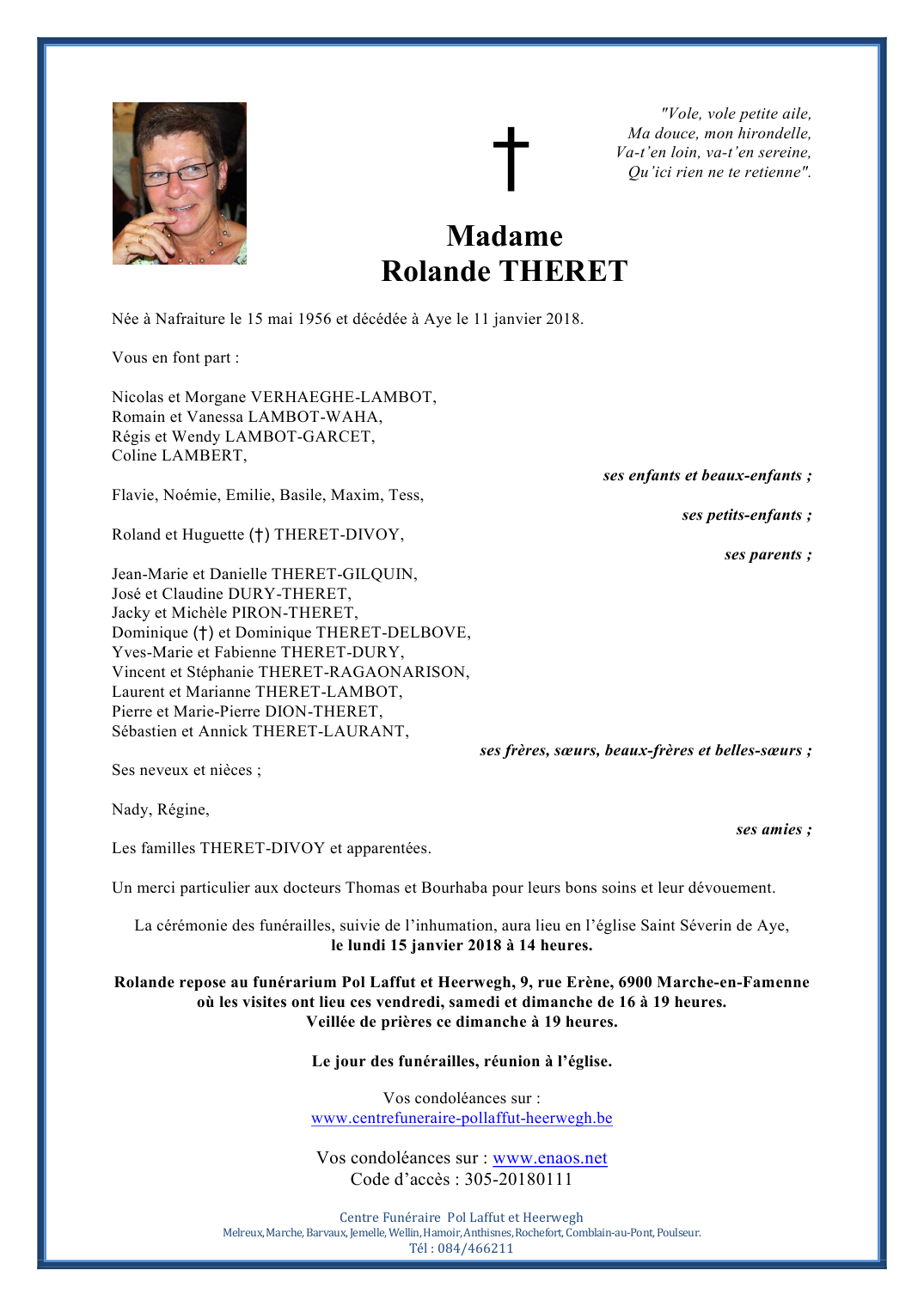 Overleden te Aye (6900) op donderdag 11 januari 2018 op 61-jarige leeftijd
