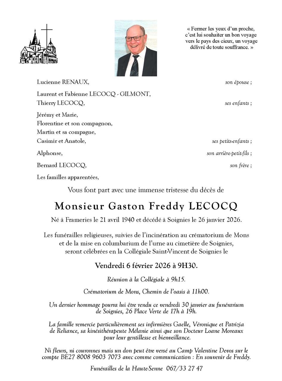 Died in Soignies (7060) on 27 January 2026 at the age of 85 years