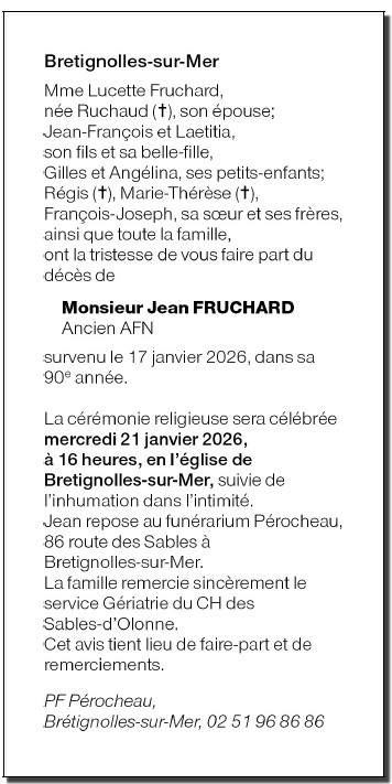 Décédé à Les Sables d'Olonne (85100, France) le samedi 17 janvier 2026 à l'âge de 89 ans