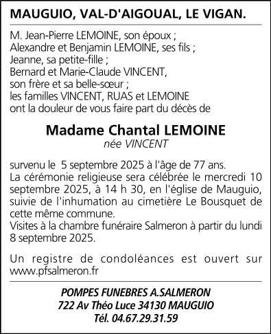 Madame Chantal LEMOINE née VINCENT