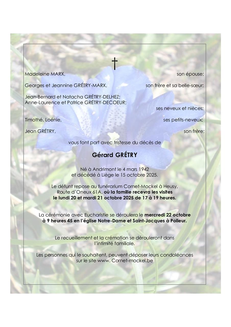 Décédé à Liège (4000) le mercredi 15 octobre 2025 à l'âge de 83 ans