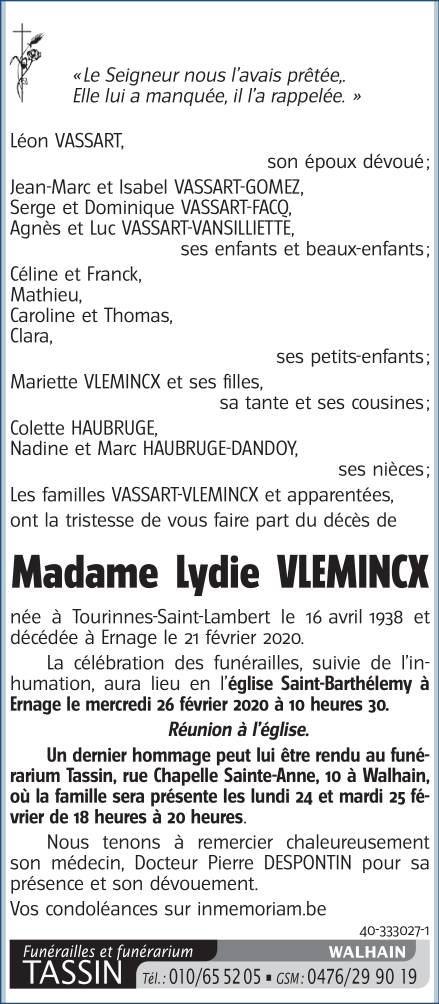 Madame Lydie VASSART née VLEMINCX