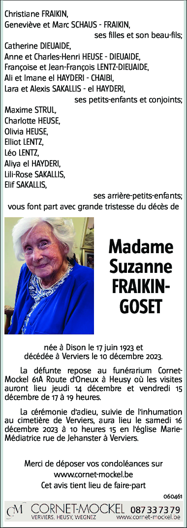 Veuve de Monsieur Joseph FRAIKIN