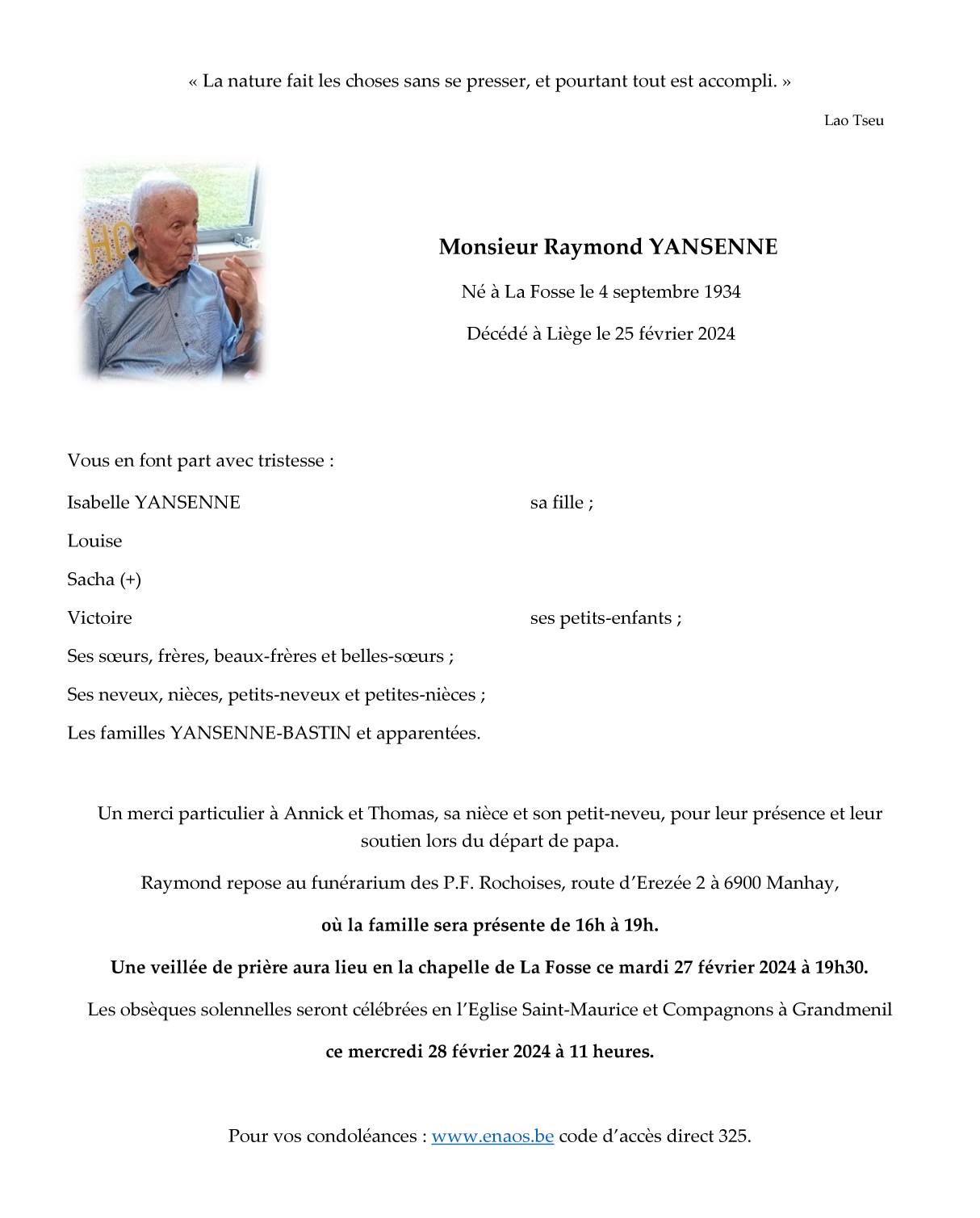 Nacido en La Fosse (6960) el martes, 4 de septiembre de 1934